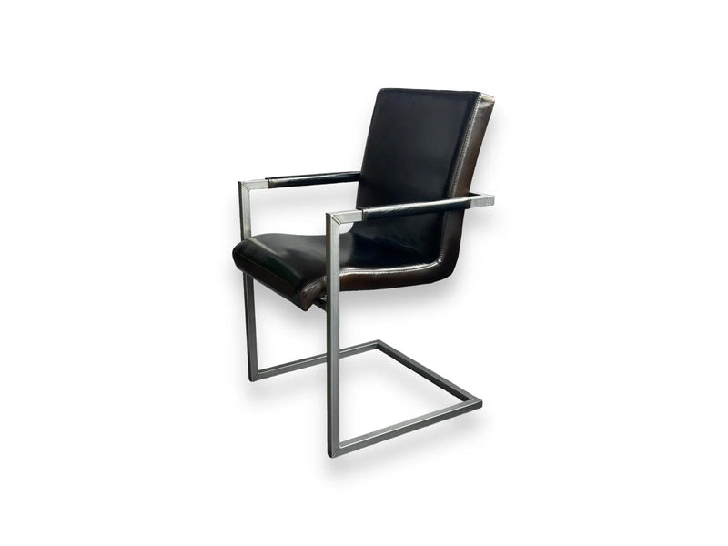 Scaunul Sabina A îmbină perfect stilul modern cu materialele premium. Realizat pe o structură metalică robustă, acest model garantează stabilitate și durabilitate, în timp ce tapițeria din piele naturală de bivol oferă un aspect rafinat și un confort deosebit. Textura unică a pielii conferă fiecărui scaun o notă distinctă, autentică.